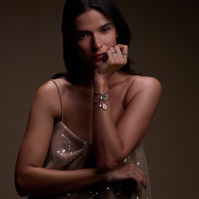 Foto de modelo meramente ilustrativa de como a joia compõe o visual.
