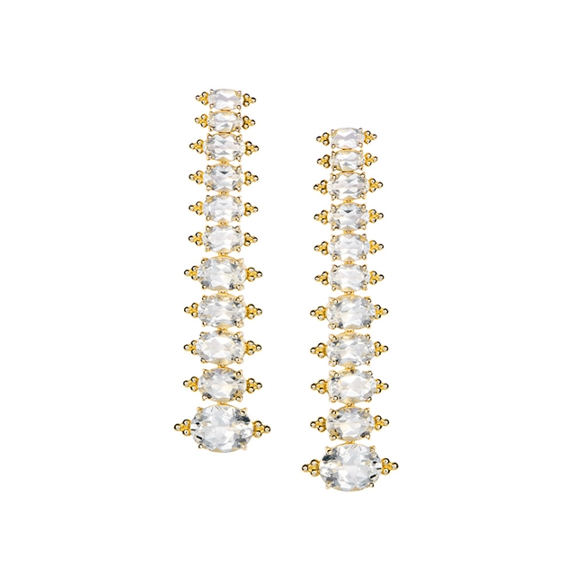 O brinco Hook renda-se foi inspirado no paraíso brasileiro dos Lençóis Maranhenses, em suas dunas, curvas e lagoas. Carla tem como tripé inspiracional a natureza, tão exuberante, a religiosidade e a arquitetura.