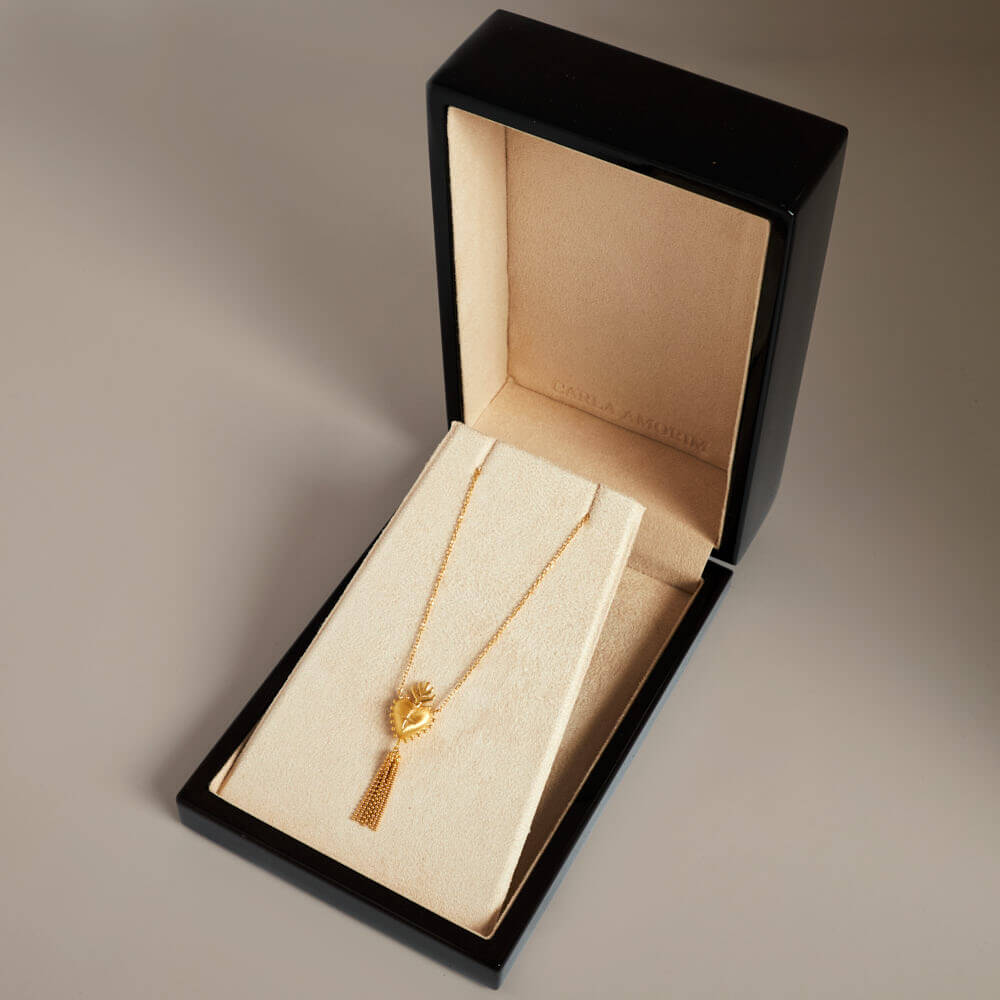 O Colar Coração de Água Benta Petit apresenta o ícone do coração em uma interpretação delicada e contemporânea. Símbolo de fé e proteção, a joia em ouro 18K traz um compartimento sutil que permite guardar água benta, mantendo-a sempre por perto — um gesto de devoção que se une à sofisticação do design.