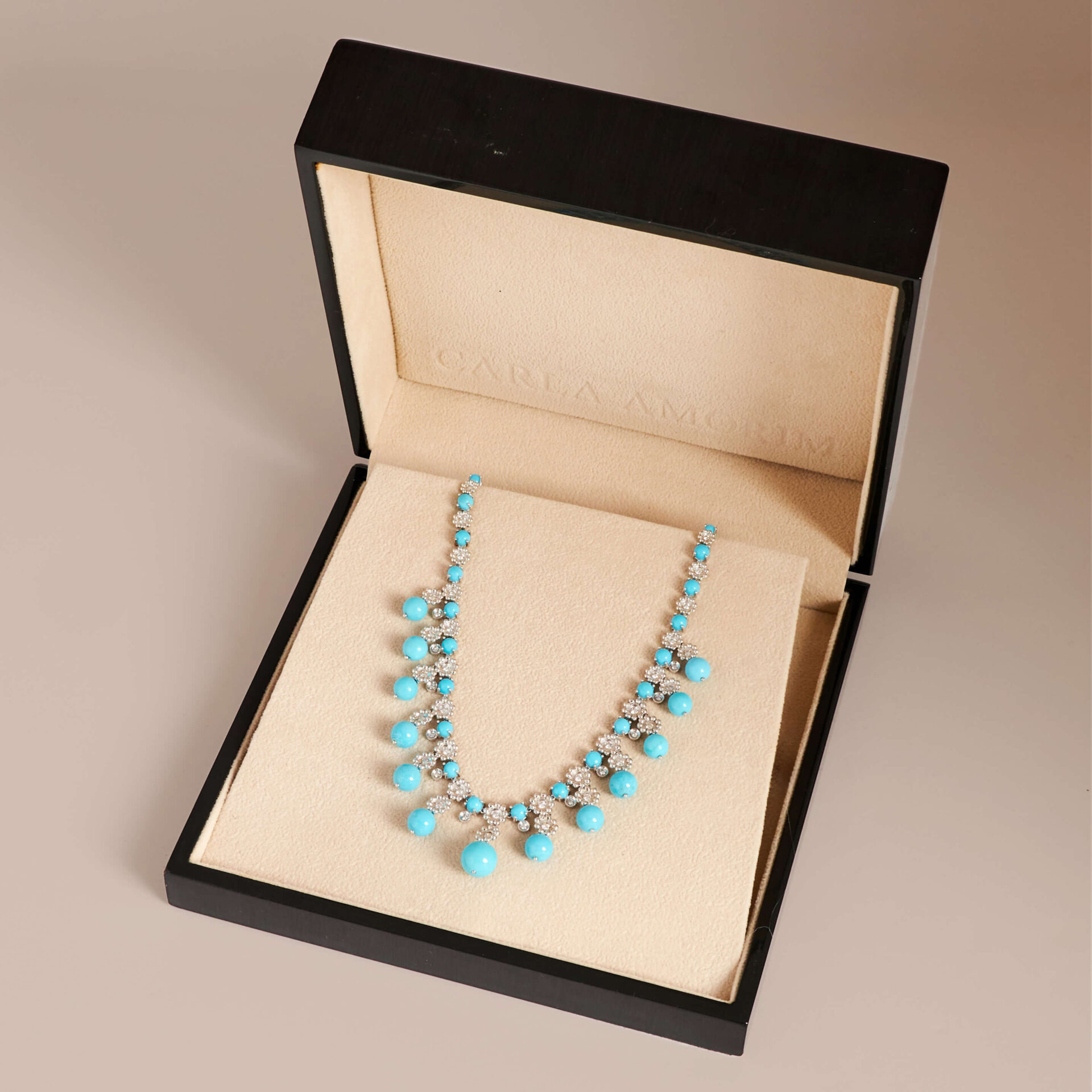 Os Colares Nobreza Turquesa traduzem a beleza que nasce da mistura entre natureza e transformação. A turquesa, com sua cor serena, evoca águas que acolhem e renovam, lembrando que até o que chega de forma inesperada pode revelar algo precioso.