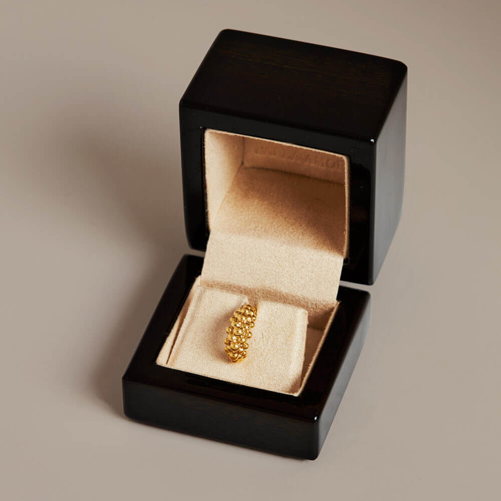 Ouro amarelo 18K em estrutura maciça que representa a bruma em sua forma mais pura. Uma joia de encaixe preciso, marcada pela atemporalidade do design.